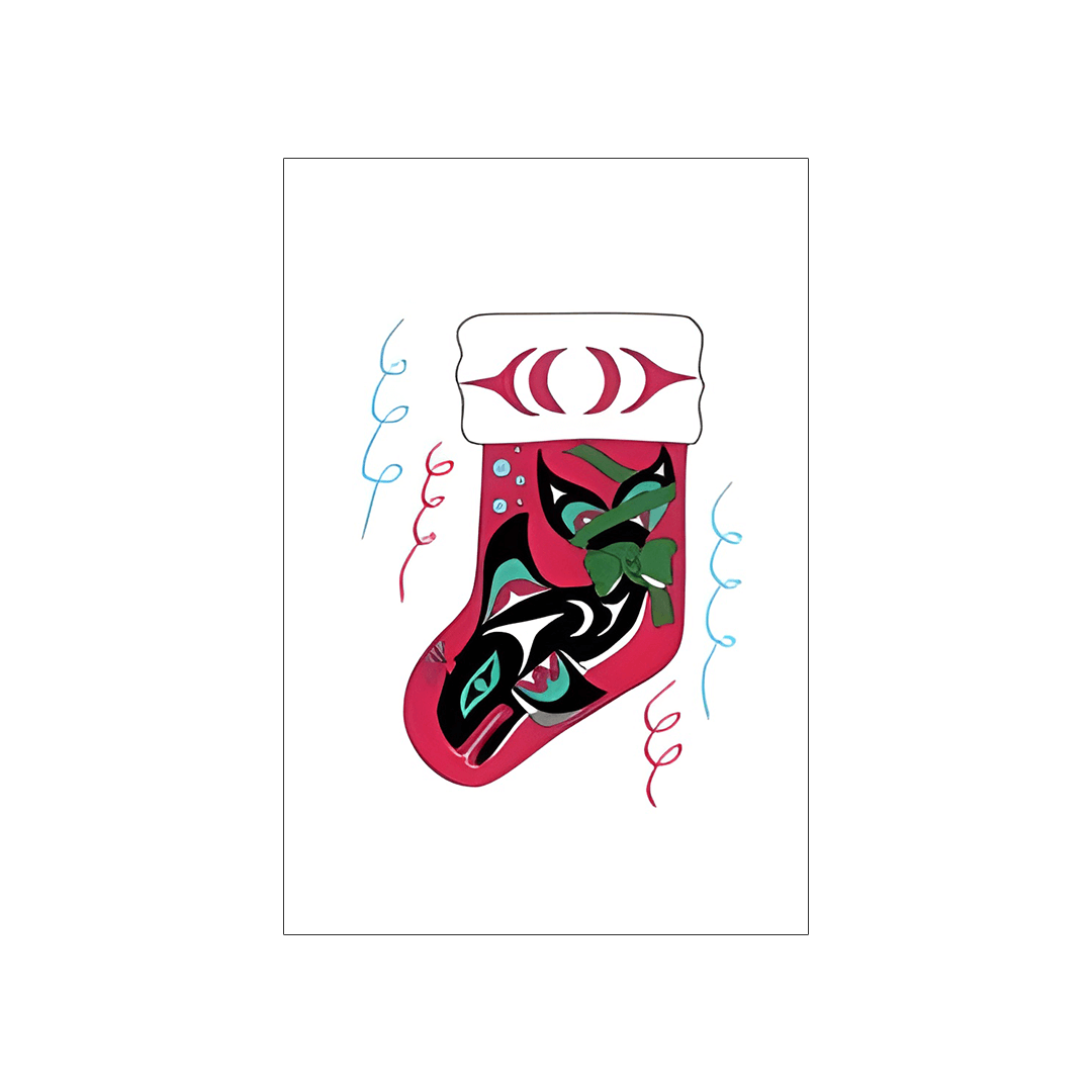 This 4" x 6" blank note card features the artwork of Angela Kimble, a Coast Salish artist whose designs beautifully blend tradition and holiday spirit. A thoughtful addition to any collection of Indigenous giftware, this card is perfect for sending heartfelt holiday messages to loved ones, showcasing authentic cultural artistry with a festive touch.