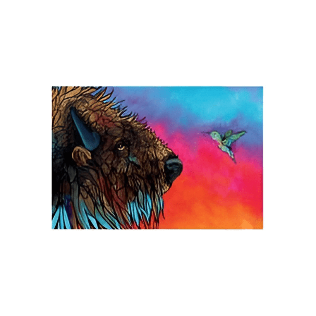 This 4" x 6" blank note card features the artwork of Micqaela Jones, an artist from the Te-Moak Tribe of Western Shoshone. Her vibrant designs celebrate the beauty of nature and cultural heritage, blending traditional themes with contemporary artistry.