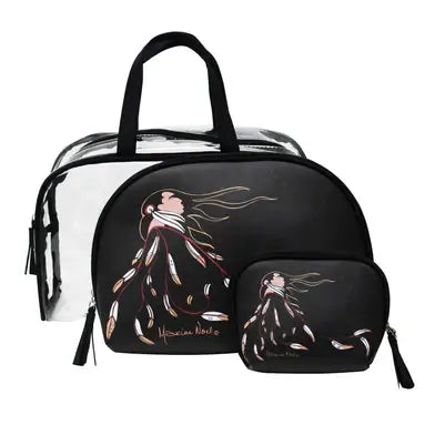 Bring a touch of Native American culture to your travels with this Eagle's Gift Cosmetic Bag Set. Designed by Sioux Native Artist Maxine Noel, these compact and portable bags are perfect for organizing your cosmetic essentials. Made with 100% polyester, the set includes a transparent bag for convenience. Embrace the spirit of the eagle and pack with ease.