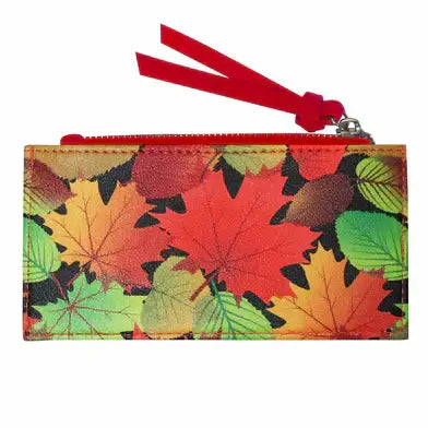 This Fall Leaves Card Holder is the perfect accessory for any Canadian or nature lover. Made from high-quality synthetic leather, it features 4 card slots and a zipped compartment for secure storage. Show off your Canadian pride with the iconic Maple Leaf design. Compact and convenient, it measures 14.2 x 7.5 cm.