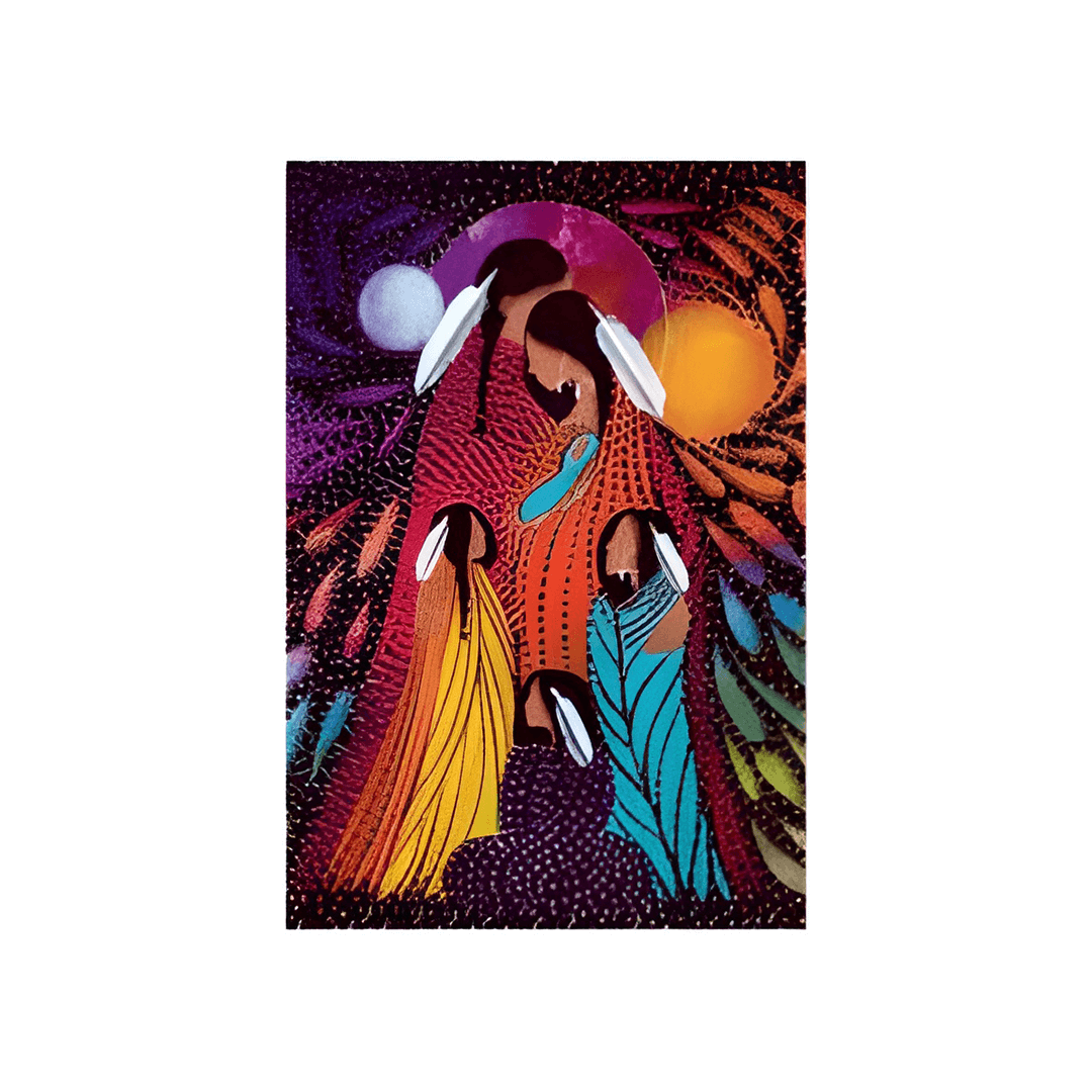 This 4" x 6" blank note card features the artwork of Betty Albert, a Cree artist celebrated for her faceless figures that evoke tradition, action, and deep spirituality. A thoughtful addition to any collection of Indigenous giftware, this card is perfect for sending meaningful messages to loved ones, offering a personal touch that highlights authentic cultural artistry.