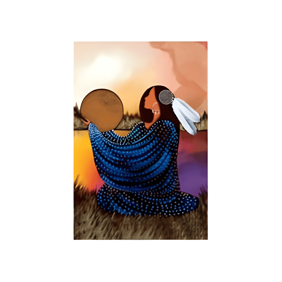 This 4" x 6" blank note card features the artwork of Betty Albert, a Cree artist celebrated for her faceless figures that evoke tradition, action, and deep spirituality. A thoughtful addition to any collection of Indigenous giftware, this card is perfect for sending meaningful messages to loved ones, offering a personal touch that highlights authentic cultural artistry.
