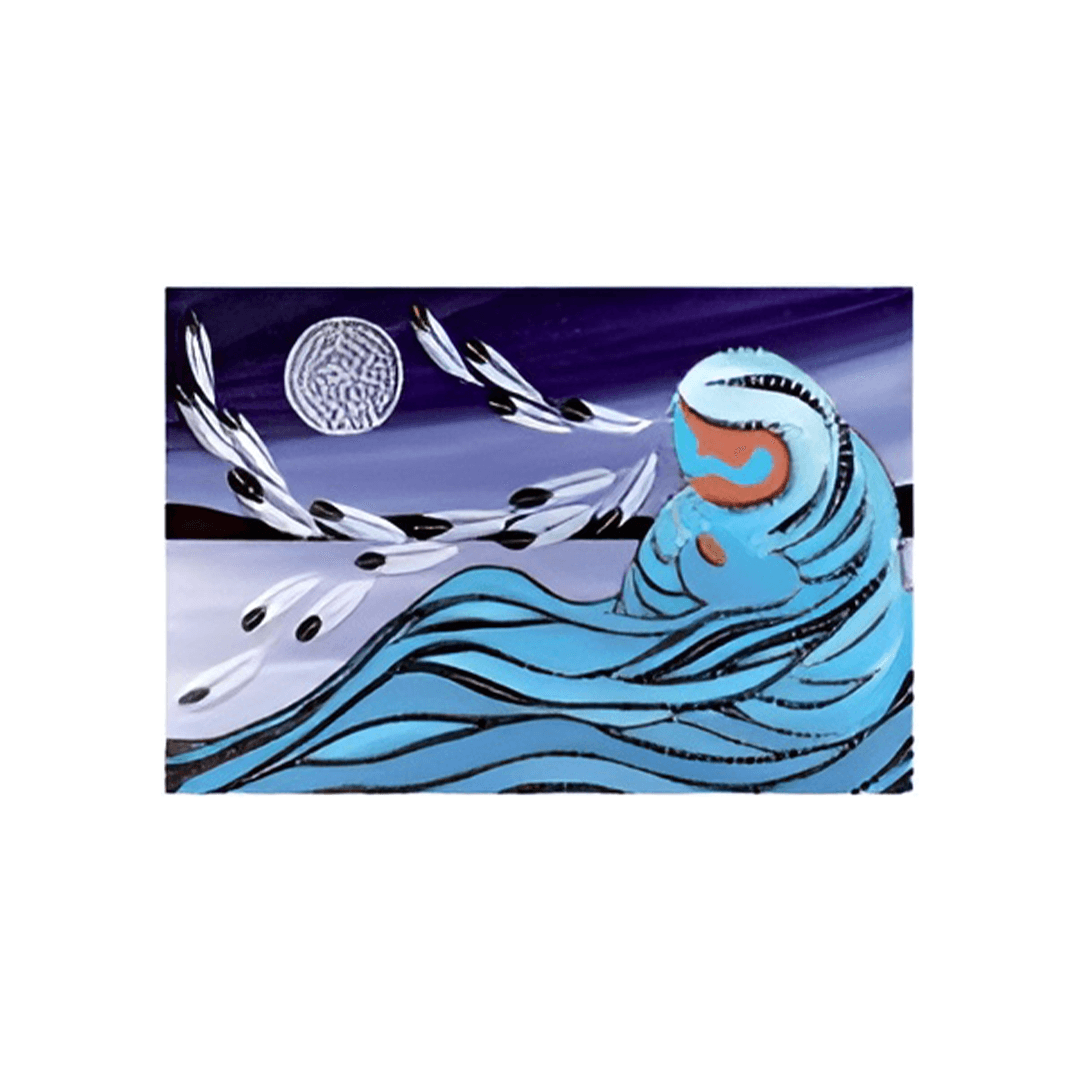 This 4" x 6" blank note card features the artwork of Betty Albert, a Cree artist celebrated for her faceless figures that evoke tradition, action, and deep spirituality. A thoughtful addition to any collection of Indigenous giftware, this card is perfect for sending meaningful messages to loved ones, offering a personal touch that highlights authentic cultural artistry.