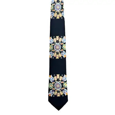 Experience the perfect blend of history and style with our Silver Threads Artist Silk Tie, designed by Métis artist Deb Malcolm. The threads symbolize the connection to the past and future, while the artist's signature and unique silk print add an elegant touch. The 8cm width ensures a modern and sophisticated look.