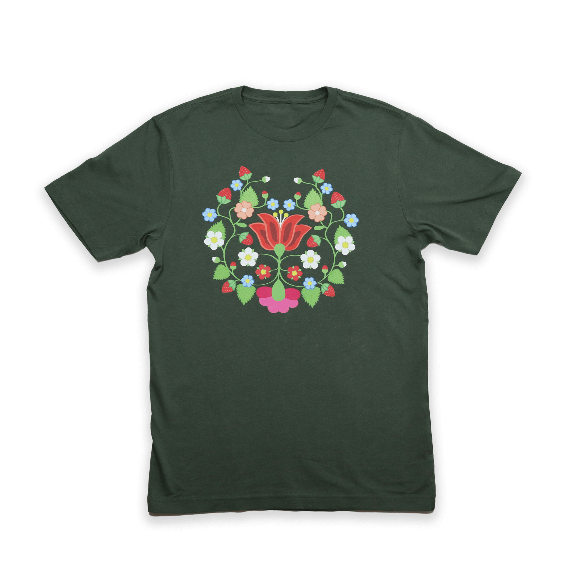 This Strawberry Floral Tee is a stylish and comfortable addition to any wardrobe. Made with high-quality fabric, it features a beautiful strawberry floral design that is both elegant and playful. Perfect for any occasion, this tee is sure to become a staple piece in your closet.
